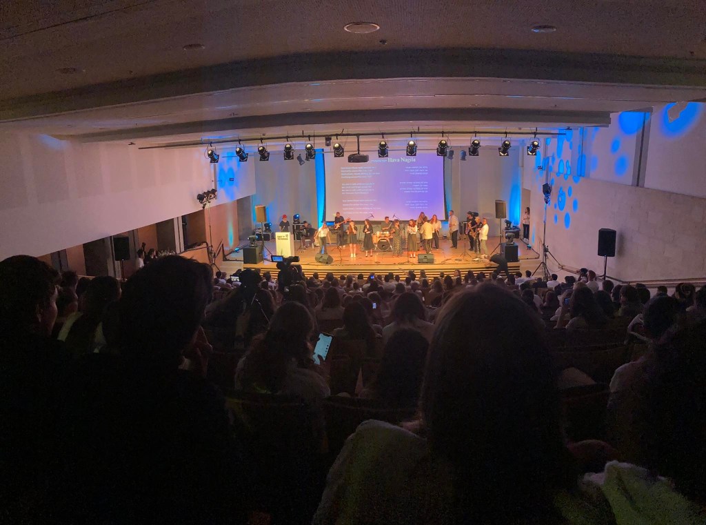 But then, after we, one by one, exited Yad Vashem’s cold triangular walls, and went through the door, hope and strange inner calmness replenished our bodies and souls. We sat on the hot stone benches and waited in silence. So, when it was time for the concert I felt as the laughter, talking and smiles were some kind of a natural reaction of our young group. But the Israeli people were the thing that made me feel something far greater than anything else on our trip this far. It was the social norms and the polite, formal atmosphere that was present in the theater. It was the quietness that young generation of Israeli kids have embedded when it comes to festivities like this.
