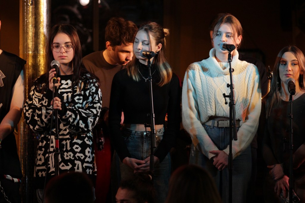 After an eventful week of getting to know each other, the city and the rhythm, our participants are now eager to show everyone what they have been working on. When the final rehearsal was done, we packed our equipment and headed towards Wedding. Our first concert was held in a lovely small synagoge Bet Haskala in Lichtburgforum. The participants had the opportunity to be a part of the service, learn more about the culture and the traditions of the Jewish community in Berlin and to contribute to the Holocaust Remembrance Day. Our international group played their song sending an important message of unity, compassion, endurance and they emphasized the importance of always speaking out for the victims and remembering their suffering and bravery. In the end we were given bread and wine and we had the opportunity to talk to the people, share stories and comfort each other.